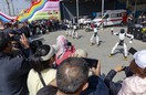 2025年6月21日,同学推着刘凯旋上台参加毕业典礼