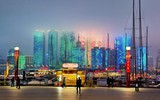 奥帆灯光秀“藏”进朦胧夜色