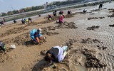遇上退大潮!栈桥成市民赶海后花园,3个小时能收获两三斤蛏子