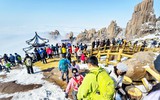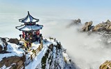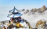 云海雪峰同框!崂山巨峰现绝美仙境