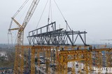 新进展!津潍高铁东营南站钢屋盖滑移分块首吊成功