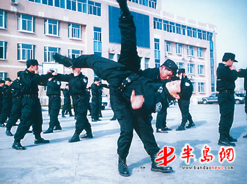 平度民警在进行徒手擒敌训练