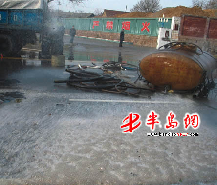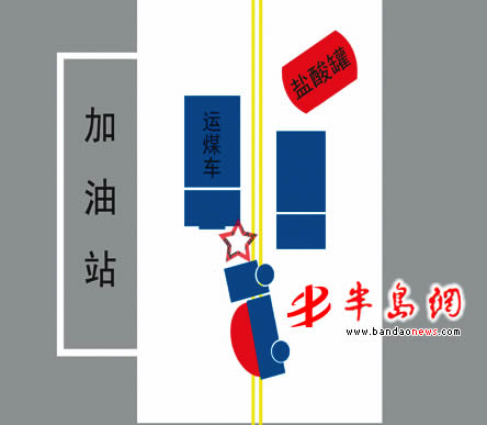 当时,只有少量的盐酸冒出来。三四分钟之后,一辆运煤车行驶到该处时,一下撞到了盐酸车上。盐酸罐从车体上甩了出去,这才导致了盐酸大量泄漏。“这里的车速实在太快了!”高女士一再向记者重复着,“不然应该能刹住车。”