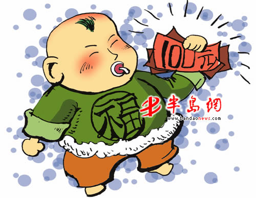 原来乐乐是嫌敏波刚才给他的50元太少呀!大家哈哈大笑着,把一张张百元人民币递到乐乐手里,而乐乐则是来者不拒,一会儿就收下了近千元的见面礼。