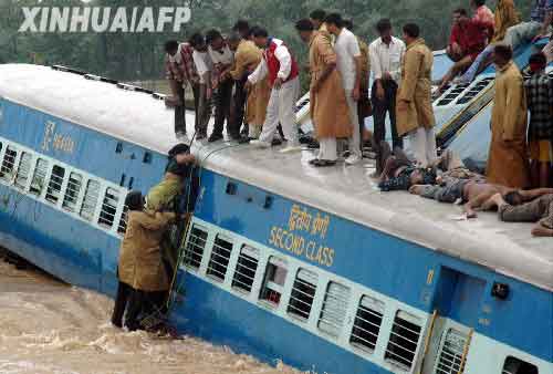 一列印度客运列车10月29日凌晨在印度南部脱轨,冲入暴涨的河水中,导致至少100名乘客丧生、另有几十人被河水冲走。由于两节车厢几乎没入水中,而水流汹涌救援困难,伤亡人数可能还会上升。当时列车上共有1000名旅客正在熟睡。负责搜救的军方人士担心,此次事故导致的死亡人数可能超过150人。