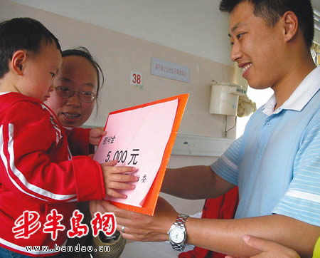 张涛将政府奖励给自己的5000元钱捐给了小杨帆