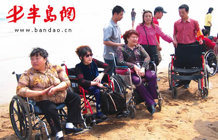 “阳光公益”志愿者团队的义工们帮助残疾人出游