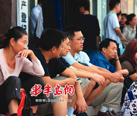 大厅门外坐满了前来交易的市民