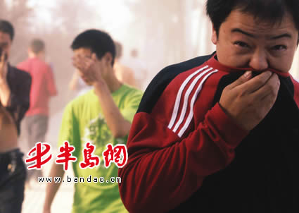 行人纷纷掩鼻躲避灰尘