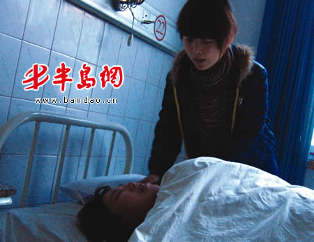 郭女士躺在病床上