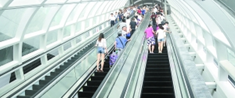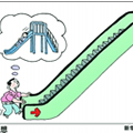- 日常乘坐扶梯最大的误区就是让人站在右侧留出一侧给人通行,其实这是不科学的。因为扶梯上的台阶不符合人体功能学的设计,造成在扶梯上走动很不安全。