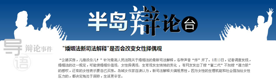 “新婚姻法将对很多女性的择偶条件产生影响,房子是重要因素,但可能不再是必须因素。”青岛半岛之恋婚介机构红娘许小姐表示,半岛之恋婚介机构有6万多的单身女性会员,根据日常统计数据显示,其中70%的单身女性的择偶前,男方需具备的必须条件是婚前须有房,然后才会考虑谈婚论嫁,新的婚姻解释实施后,部分单身女性有可能改变择偶观。