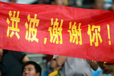- 昨晚的合肥体育中心体育场,大雨如注倾盆而泻,高洪波石雕一般地站在雨中,站了整整90分钟。这场热身赛,中国队1:0小胜牙买加,高洪波捍卫了热身赛之王最后的骄傲。这个时候,我们也许不应该戏谑地评价一个将走之人,也许我们的心情应该像球迷的横幅一样——洪波,谢谢你。可是,该来的总归要来,结束的总要结束。有两位球迷手中举着横幅,上面印着鲜红的五个大字——洪波,谢谢你。豆大的雨滴在银白色的灯光照射下格外明亮,两人脸上的表情肃穆沉重。 [详细]