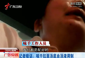 - 一直以来,味千拉面留给消费者的都是“有营养”的形象,但最近有媒体质疑,号称用猪骨熬制的味千拉面汤底其实是用专门的汤粉、汤料调制出来的,每碗汤的成本不过几毛钱。对此,味千中国总部相关负责人表示,味千拉面的汤底是由浓缩液兑制而成,不过这种浓缩液也是由猪骨熬制所得。昨天,快报记者联系了南京味千拉面,相关负责人仍表示,不存在用调料包等说法。 [详细]