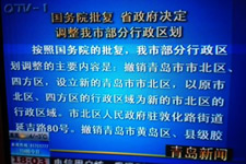 姜军建:一是撤销市北区、四方区,设立新的市北区,以原市北区、四方区的行政区域为新的市北区的行政区域。二是撤销黄岛区、胶南市,设立新的黄岛区,以原黄岛区、胶南市的行政区域为新的黄岛区的行政区域。