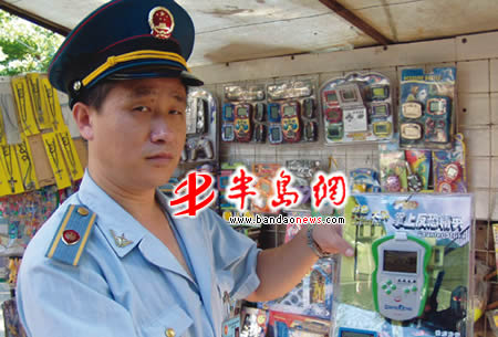 今天下午3时许,水清沟工商所在对宜阳路小学及第五十六中学周边的一些个体商店检查中发现,一些不法商贩正在销售国家明令禁止上市的一些学生用品及游戏用品。据当事人交代,这些非法商品全部是从本市利津路小商品批发市场购进的,产自浙江、福建等地,质量非常低劣。一个兑奖卡片进货只需 10元钱,0.5元刮一次奖可刮100次,每张卡片的毛利是 40元;劣质圆珠笔的进价是 0.08元,对学生卖 0.5元一支,圆珠笔蕊是不透明的,里面只有很少一点笔油,并且所用塑料强度较差很容易破碎;“三无”掌上游戏机的质量也不好,并且画面充满暴力色彩。