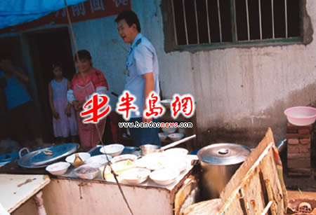 本报8月11日讯 随意在临街房边搭个棚子就充当“小吃排档”,作坊里面却污水横流,脏乱不堪。今天上午,城阳工商分局流亭工商所依法取缔了 10个做凉菜的大排档。
