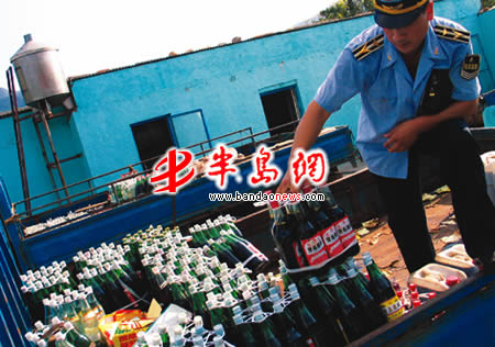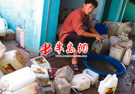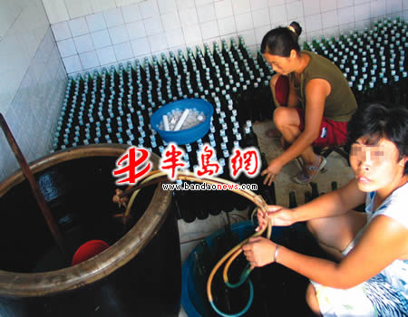本报8月12日讯(记者 何毅 通讯员 周文韬) 几根水管,几个大铁桶,一台灌装机,用井水加工业盐和色素勾兑酱油。这些酱油被贴上各式各样的商标后流入岛城周边集贸市场和饭店。今天,市质监稽查局执法人员根据市民举报,一举查处了位于北宅大崂村的明源酱菜加工厂,查获黑酱油和米醋共计一吨。