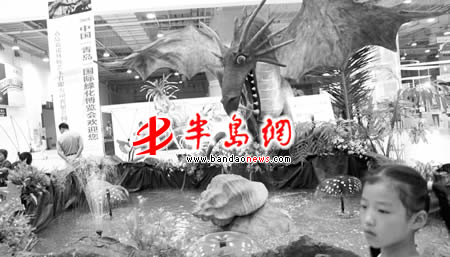 图为一参展商将展台布置成“侏罗纪公园”的模样