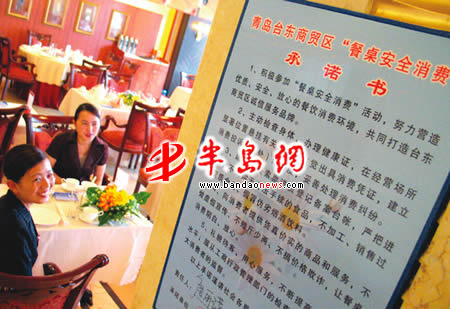 为此,由市北工商分局台东三路工商所牵头,70余名餐饮业业户今天上午在市北工商分局举办的“餐桌安全消费”活动承诺书上签字,承诺在显著位置悬挂相关证照、主动出具消费凭证;不采购无合法手续食品,不销售过期变质、假冒伪劣烟酒饮料……并将承诺书悬挂在店面显著位置。