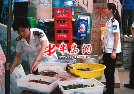正在现场进行检验的市北区卫生监督所的工作人员告诉记者,他们已经对现场的食物采样化验,结果很快就能出来。