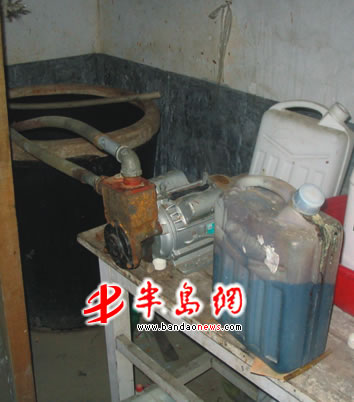 8月 21日上午,记者随执法人员来到该生产窝点。记者看到生产汽水的车间里堆满了用废旧塑料制成的塑料瓶,地上污水横流。一个大水缸、几根塑料管和一台灌装机就是生产汽水的所有设备,黑乎乎的大缸就放在墙角处,旁边的桌子上放满了各种生产汽水用的添加剂和香精,有蜂蜜香精、糖精、橘味香精、“日落黄”着色剂等,执法人员沾在手上的“日落黄”擦了两遍肥皂也没有洗干净。该窝点老板的妻子交代,他们生产的汽水就是在大缸里放满水,然后加上色素、香精调制成的,汽水都是以每瓶 0.2元的价格向周边的批发市场和中小型超市批发。记者看到,已经生产好的汽水堆了半屋子,有“崂岩”牌雪冰汽水、“崂岩”牌苹果汽水、“崂岩”牌甜橙汽水。