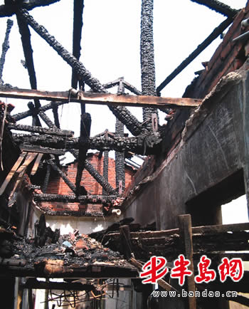 四方消防大队的有关负责人告诉记者,他们在今天凌晨灭完火后,随即展开火灾原因调查。由于屋顶已经烧塌,调查起来比较困难,初步怀疑是电线老化短路所致,具体原因还在调查中。(请市民李先生到本报领取线索费100元) 文/图 本报记者 刘纯来