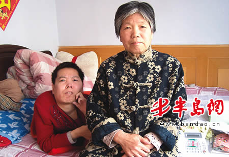 今天上午,记者来到了位于李沧区玉液泉路上的刘淑云家中。“小时候一个北京的医生断言我活不过20岁,结果母亲把我拉扯到了 41岁。”因为浑身瘫痪,刘淑云双手仅有3岁幼儿的力量,她近70岁的母亲静静地守在一旁,不断地为女儿夹菜、递餐巾纸。