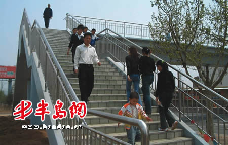 半岛网5月1日讯(记者 刘纯来) 备受市民瞩目的 308国道首座过街天桥———杨家群人行天桥今天正式投入使用。据悉,杨家群过街人行天桥即将安装彩色地灯,届时杨家群人行天桥还将成为308国道上的“夜景彩桥”。