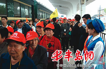 “虽然天气有点凉,但是这里的空气很好,是我们洛阳那边没有的。”脚刚迈下列车,80岁的杨老汉就对青岛的空气赞叹不已。5月9日上午9时30分,从河南洛阳开来的农民旅游专列停稳后,杨老汉和他的同伴们在年轻人的搀扶下下了车。据介绍,该专列上的旅客是河南洛阳孙旗屯村的农民,他们是包乘专列到青岛旅游的。