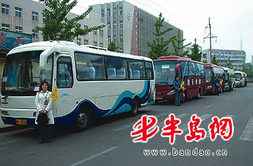 青岛华东旅行社的郭云霞经理负责此次接待,她介绍说,按照行程安排,旅行社已备好了 18辆豪华旅游大巴,“目前是旅游旺季,我们几经周折才把这18辆旅游大巴凑了起来”。