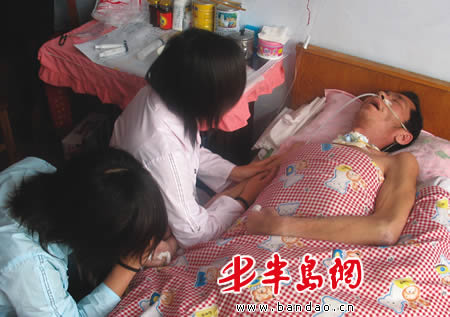 姐妹俩赶到医院时,正好是李启波手术完后被推出手术室的一刹那,看到慈祥的父亲满头绷带、喉咙被切开,姐妹俩一下子扑了上去:“爸爸!爸爸!你醒醒啊……”但任凭怎样呼喊,李启波还是一动不动。医生说:“病人已濒临脑死亡,恢复的可能性几乎为零,最好的情况也是个植物人。”面对亲人,怎能言弃?“继续治!爸爸一定会好起来的。”姐妹俩异口同声地说。