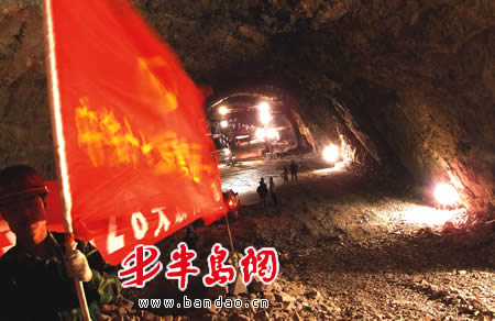 据了解,仰口隧道将在11月彻底完工通车,滨海公路北段也将在年底前通车。届时从香港东路到即墨田横无需经过崂山劈石口盘山道,可直接穿越隧道全程仅需40分钟,把青岛到即墨的时间由目前的2小时缩短为1小时。上图为青年突击队的大旗在打通的隧洞内飘扬;右图为隧道入口。 文/本报记者 姜振海 图/本报记者 刘延珉