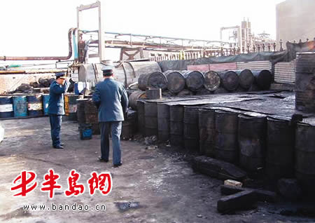 昨天下午,永安路工商所接到群众举报,称安顺路一破旧的厂房院内有个黑工厂,收购废油“翻新”牟取暴利。执法人员赶到现场看到,数百个大铁桶被胡乱地放在院子里。3名工人正将一辆车上的油向大铁桶里面倒,这些油黑乎乎的,里面有杂质。据工人交代,这些油是从一些汽车修理厂处收购来的废机油,他们对这些油经过沉淀、过滤等简单处理后,再换成新桶批发给一些小规模的汽车修理厂,部分还销售到潍坊等地。