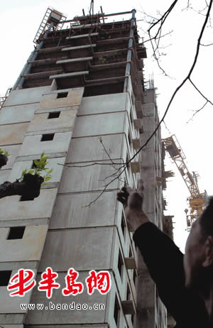 半岛网5月11日讯(记者 王滨) “一根约半米长的铁棍突然从天而降,院里一棵大树的树枝都被砸断了!”今天,家住曹县路 2号的王先生向记者反映,称居民院前面几座在建的高楼经常飞下铁架、木板、螺丝等物品,已经砸坏了院里的很多东西,他多次找过工地,但是问题始终没有解决。