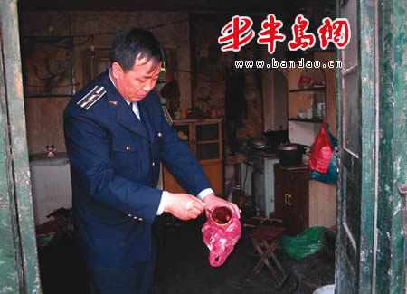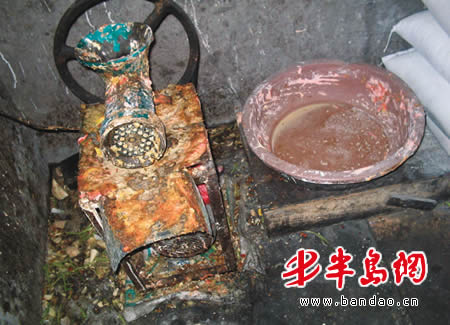 一进院门,执法人员看到,脏乱不堪的院子里满地都是污泥,油腻的手套、鞋子到处都是,几个油桶里散发着阵阵怪味,两只大铁锅内盛着黑油,锅台南侧几个大塑料桶内装满了黑乎乎的地沟油。