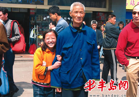 谢振楷父女刚出青岛火车站时让记者拍下的照片