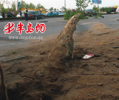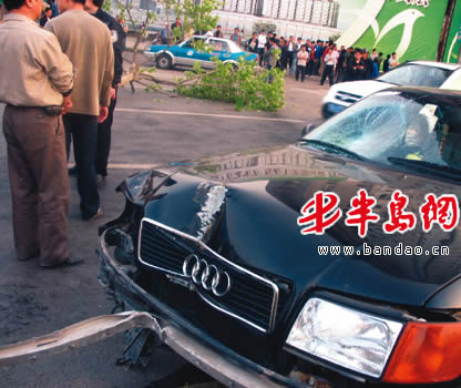 “又撞人了!奥迪轿车刚跑了约 300米左右,又冲上了右边的人行道。”孙先生目击了该事故的第二现场,他看到轿车冲上人行道后,把正在行走的一名50多岁的女士顶在车前,当时车不但没减速,反而向左边猛打方向盘,一下把人行道边的一棵法桐拦腰撞断,“那女子就在车与树相撞的瞬间被轧到了车底下,轿车从其身上碾过后又将其拖到了马路中央,之后,奥迪轿车飞速冲到马路中间的绿化带后才熄火停下。幸亏绿化带旁的水泥台面结实,要不然还不知道会发生什么事!”孙先生惊心地说。