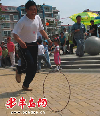 半岛网5月21日讯(实习生 黄超 记者 刘鑫) 打弹弓、踢毽子、滚铁环、抽陀螺,这些曾伴随了几代人童年时代的老游戏,已难觅身影,但今天上午,城阳区富昌路天泰城社区的100余名男女老少聚在一起,重新玩起了这些老游戏。该社区客服部的负责人李经理表示,因都市居民生活发生了变化,邻里之间很少往来,这样的活动促进了邻里交流。