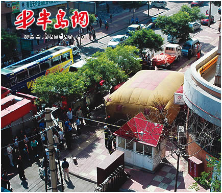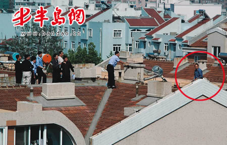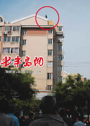 记者赶到事发现场时, 110民警、消防官兵以及周围居民已在现场展开营救工作。记者看到一男子站在 8楼楼顶,当时风力较大,稍有不慎就会坠下。据围观者称,该中年男子就住在这个小区内,下午1时许就爬上了 8楼楼顶。由于男子及营救人员所站的地方大都是斜坡,如果采取“强攻”方法,会非常危险。营救人员在耐心劝说的同时,楼下消防人员摆好了气垫,防止发生意外。