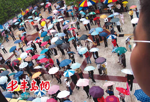 “早晨5时20分门口已经排了300多人。”青岛超银中学一位负责人感慨,为了孩子上学,家长不容易。同样,在青岛育才中学门前,也是天不亮就排起了报名的“长龙”,正式报名开始后,从学校大门口到教学楼报名点,100多米的距离,即使不拿伞,走在家长们撑起的“伞阵”下,也不会被雨淋着。