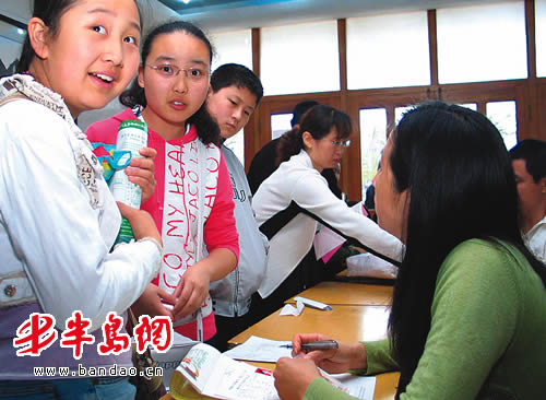 今天上午,在青岛二中校园内,到处都是家长的身影,偶尔才能看到报完名后从报名点走出来的学生。记者仔细观察了一番,很多家长都是独自来打探情况,考生根本没来。