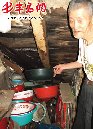董大爷家里的接雨盆堆满了各个角落