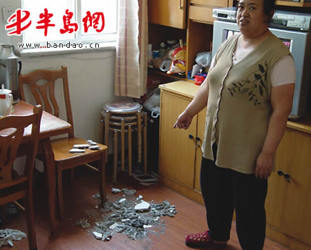 左女士说,27日上午,有段时间雨下得特别大,当时自己到窗户边上向外张望,就在此时,突然听到头顶“咔嚓”一声,回头一看,一块菜板大小的天花板落在地上,而所砸的位置,恰恰就是家人吃饭的地方。记者在现场看到,她家的顶棚上露出一个大洞,几根被雨水浸泡烂了的房梁还在滴滴答答地流着雨水。左女士介绍,她家住的这栋房子已经有 100多年的历史了,一到雨天就漏雨。