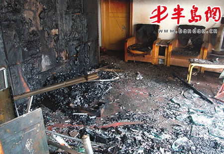 记者十几分钟后赶到现场时,大火已经被辽宁路消防中队的消防队员扑灭,里面不断地往外面散发着浓烟,浴室前台的木柜被烧毁,辽宁路派出所的几名民警正在现场维护秩序,消防队员身背氧气瓶,头戴着面具不断地由浴室里进出。