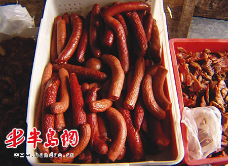 近日,有人向市工商局消保处举报,青岛一食品有限公司天天在四方湖岛和小水清沟卖超市退回的散装酱货和火腿肠,其中包括很多过期食品。接到举报后,5月 30日下午4时许,市工商局消保处工作人员着便衣悄悄赶往湖岛村和小水清沟进行暗访。
