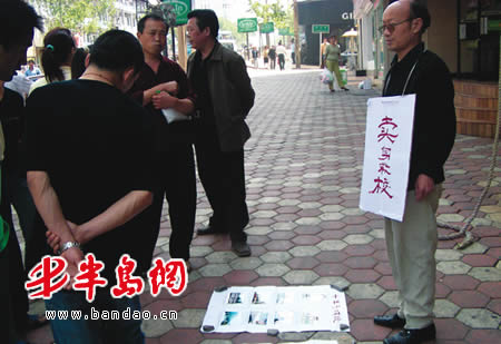 半岛网6月2日讯(记者 程爱华) 连日来,一名中年男子身挂“卖身救校”的牌子流动在岛城街头(见上图),声称要通过卖掉自己的器官来换取一笔资金让自己的学校获得新生。