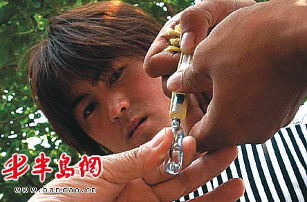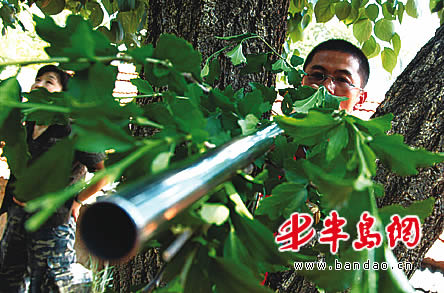 “金属吹管太亮,还是先将它伪装一下吧!”记者提议。不一会儿,经过伪装的吹管便制作完成,架在距离泼猴 5米左右的树杈上。叶师傅再次引诱,泼猴又来到后院墙头抢吃食物,就在泼猴又一次专心去拿地上的点心时,“狙击手”果断出击,一只装有麻醉药的针管径直射进泼猴的左臂上,只见泼猴在发出一声嚎叫后,飞速逃进附近的山林。