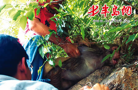 泼猴被麻醉吃杏叶"解毒" 诱捕行动再次失败(图)