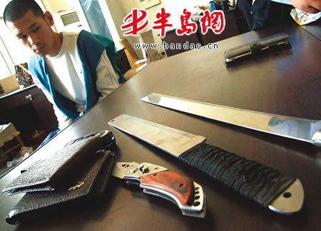 5月18日零时许,合肥路某个体废品站老板丁某,在迷迷糊糊中突然听见外面有人敲门,得知来人准备卖废旧电线,丁某就披上衣服去开防盗门。没想到,他刚打开防盗门,就感觉到自己的脖子上一阵发凉,细看是一把砍刀架在脖子上,4个男青年将其逼到屋内后挥刀就砍,连躺在床上睡觉的妻子也被砍得鲜血直流。行凶之后面对闻讯赶到的丁某的众多邻居, 4名手持砍刀的男青年猖狂地将他们逼到墙角,将室内钱物洗劫一空后逃之夭夭。